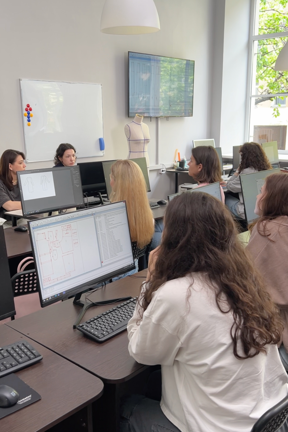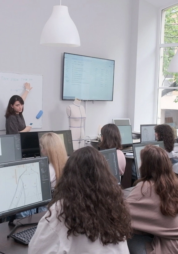 Обучение конструированию одежды в САПР «Грация» в очном формате проходит в оборудованном компьютерном классе. За каждым студентом школа закрепляет свой компьютер с установленной на нём программой. Также предоставляется учебный доступ к программе на ваше устройство.