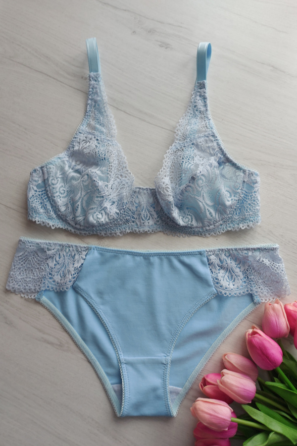 По итогу курса вы сошьете изделия собственного дизайна: бюстгальтеры, трусы. В курсе мы подробно разбираем пример пошива комплекта с бюстгальтером с каркасами и мягкой чашкой.